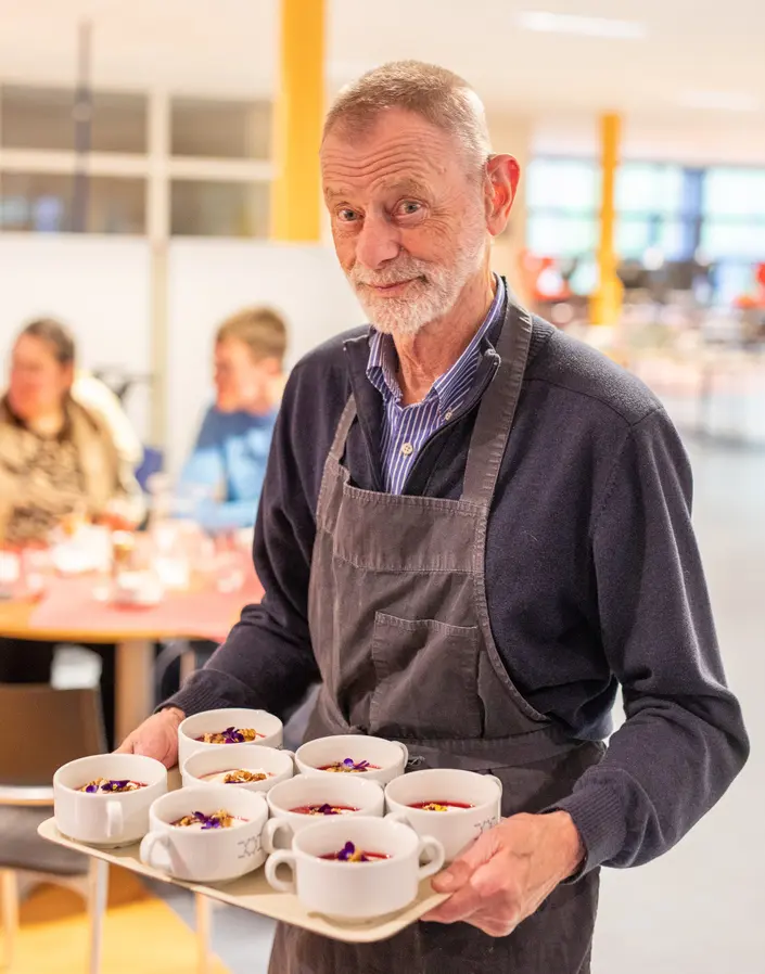 Vrijwilligers van het eetcafé bereiden een drie gangen-diner en zorgen voor een gezellige en ontspannen avond voor de deelnemers.