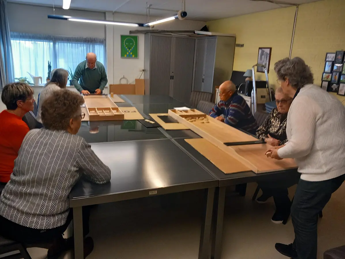 We sjoelen in groepjes van 4 à 5 personen.