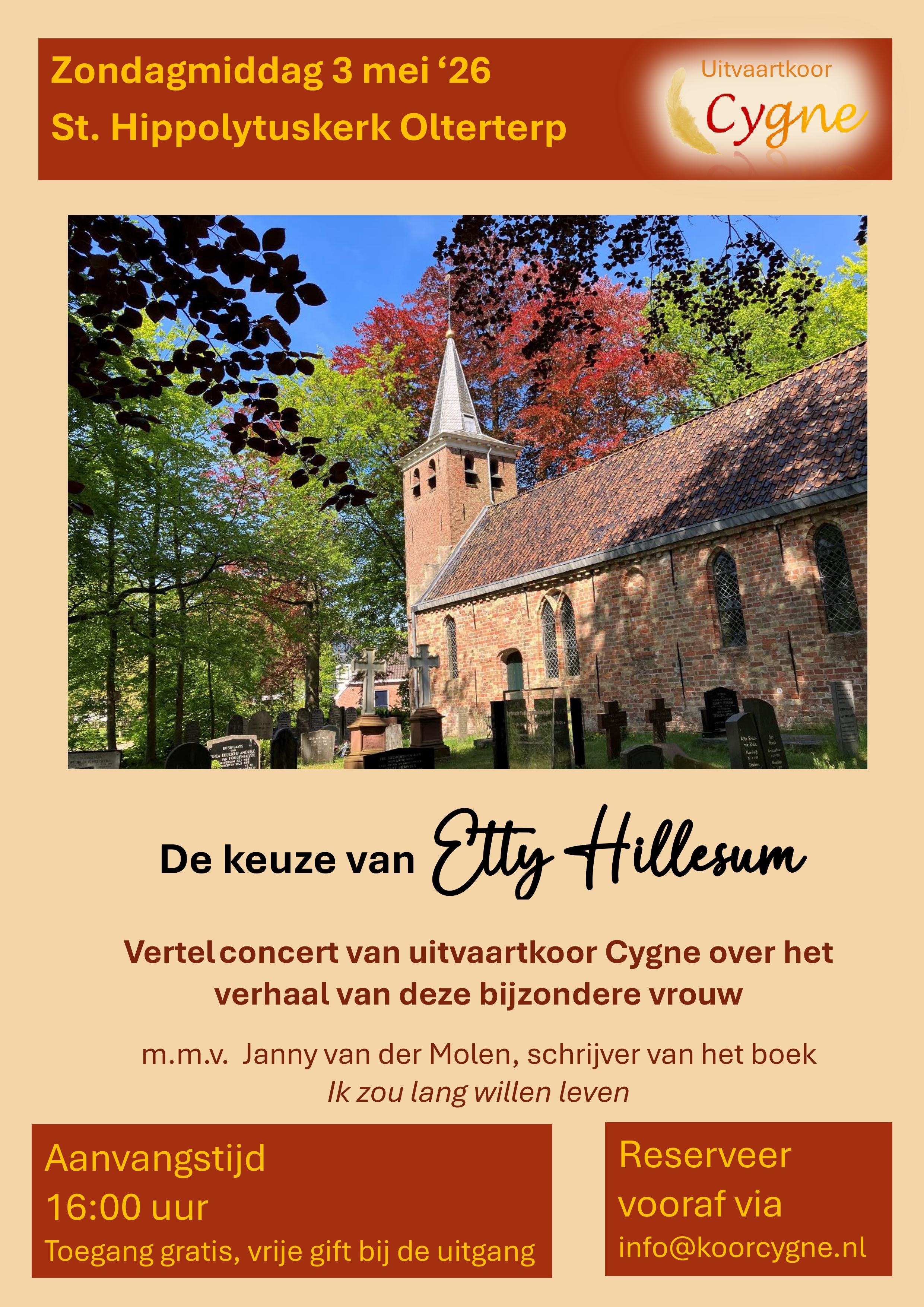 In dit vertelconcert staat het verhaal van Etty Hillesum centraal, verteld door Janny van der Molen, de schrijfster van het boek "Ik zou lang willen leven". Met koormuziek, citaten en gedichten wordt de verbinding gelegd tussen haar werk en de tijd waarin we nu leven.